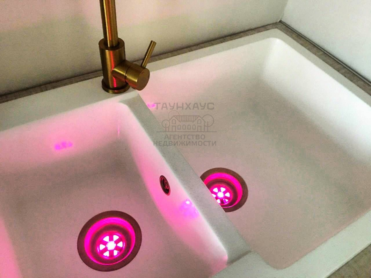 Подсветка слива в раковине нежно-розового оттенка.